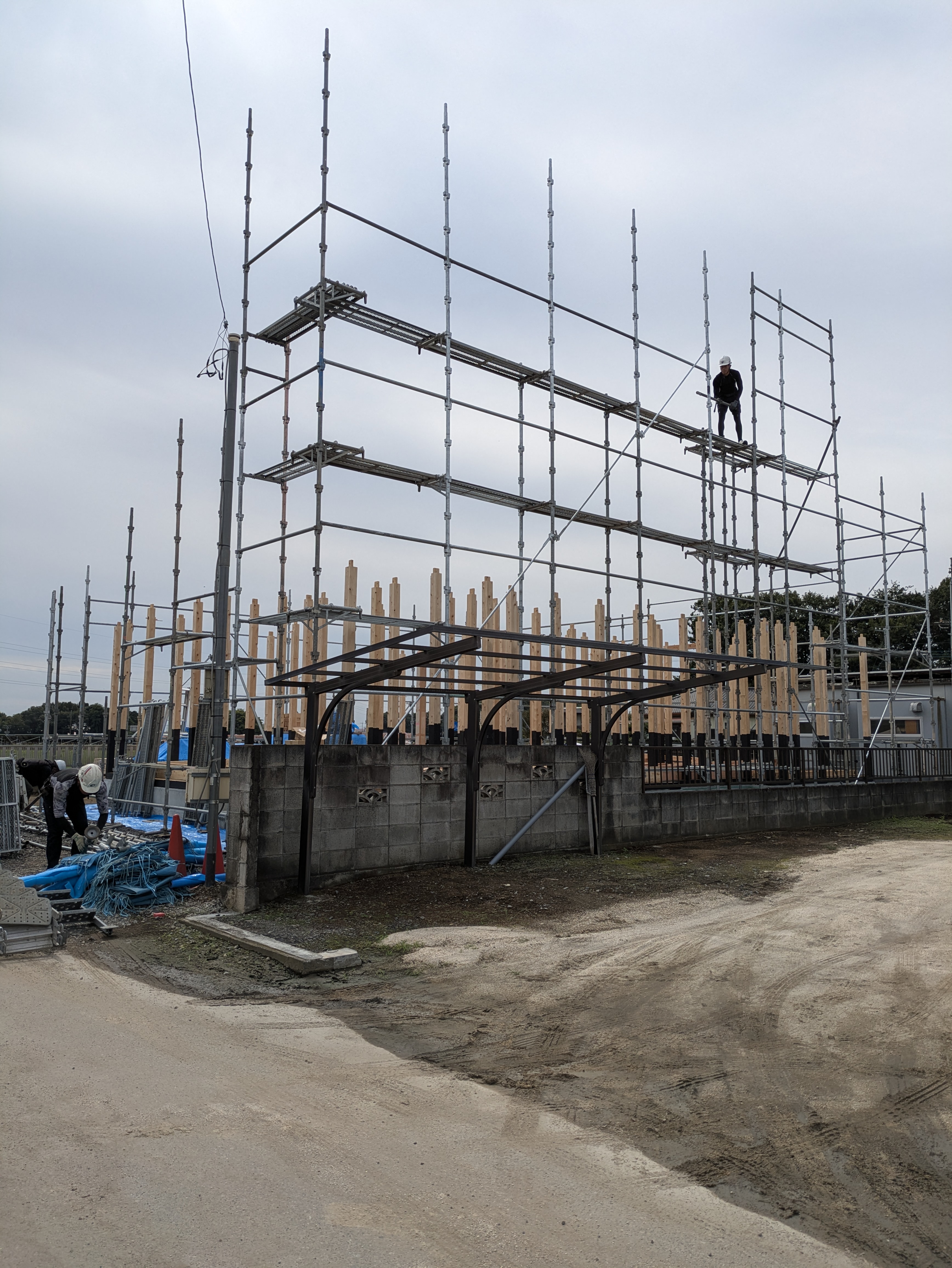 足場屋さん、大工さんなど職人さんが着々と準備をしています。