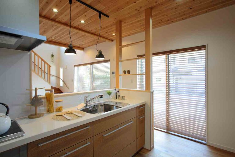 リビングを一望できるキッチンは、奥様の安心材料の1つです。お子様が一人で遊んでいても見守ることが出来るし、朝家族が階段から降りてきたのもわかったりと家族の安全を把握することが出来ます。