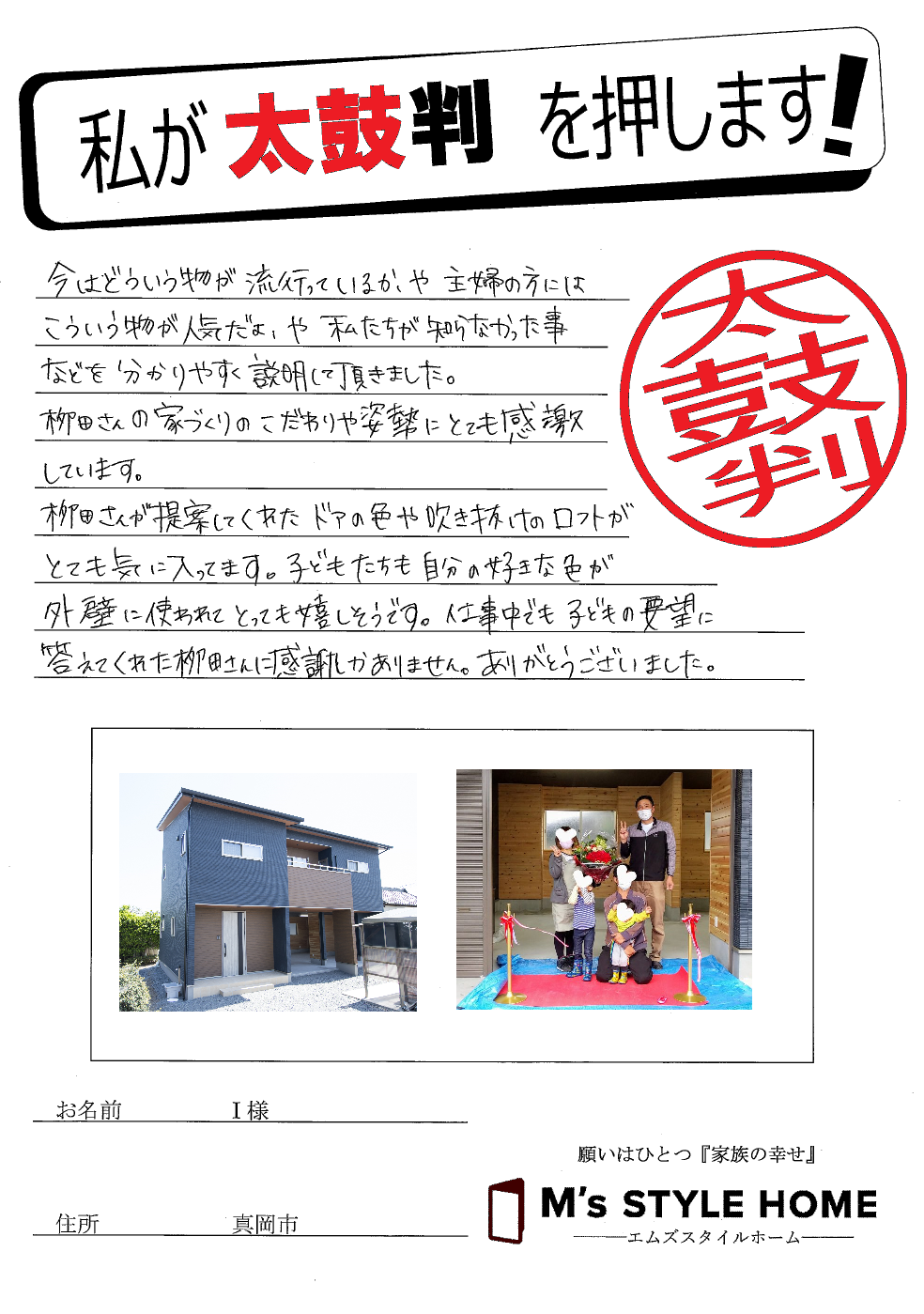 栁田さんの家づくりのこだわりや姿勢にとっても感激しています。