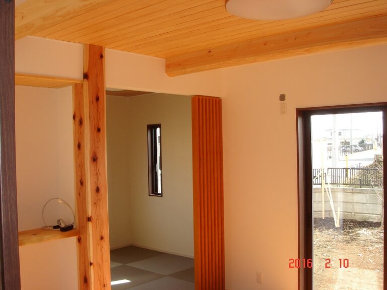 木の柱を出し、ナチュラルな空間に重厚感を。奥にはタタミスペースがありちょっとしたお部屋の中に安らぎ空間を演出。